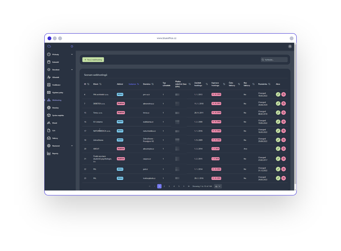 Umíme upozorňovat na exspiraci služeb a automaticky vystavovat faktury.