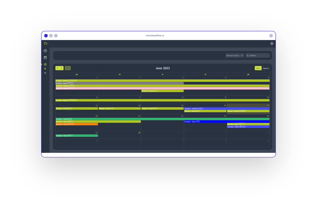 Snadná správa dovolených zaměstnanců včetně přehledného kalendáře dovolených, díky kterému budete vždy vědět koho v daný den, týden nebo měsíc potkáte v kanceláři.